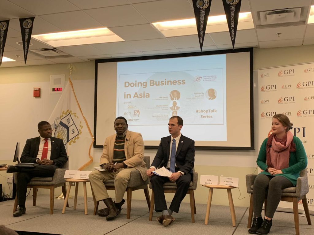 On February 22, FAO Global Business Analysts Tong Wu and Michael Tian attended the ShopTalk Series: Doing Business in Asia at Global Policy Institute in Washington, D.C. At the event, international experts include Cody Dietrich from U.S. Commercial Services, Dr. Gbadebo Odularu from Center for Research on Political Economy, Dr. Connell Wise from Connell Wise & Associates, LLC, and Sarah Catherine Wendt from INTL Translation & Communications talked to dozens of U.S. enterprises on how to successfully do business in Asia, and in China.
